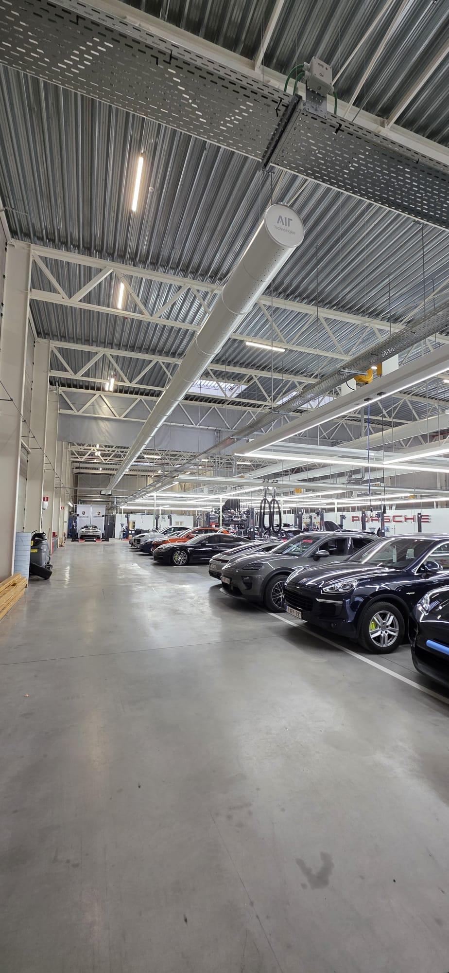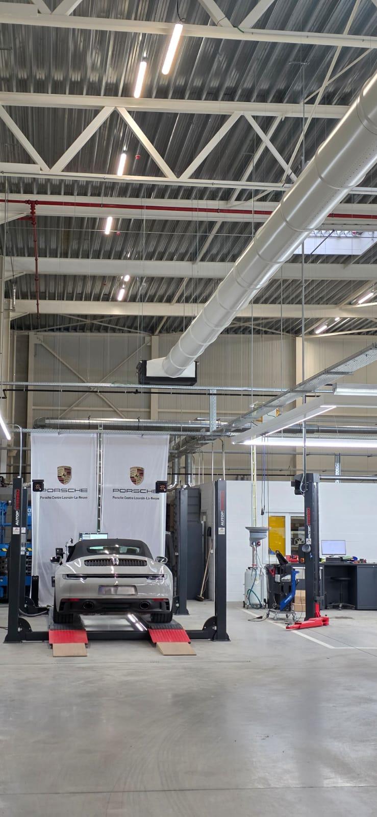 Pour le projet de ventilation et la diffusion de la climatisation de l'atelier Porsche Center de LLN, la société CTSM a fait confiance à Sanutal pour la fourniture de l'ensemble du matériel.